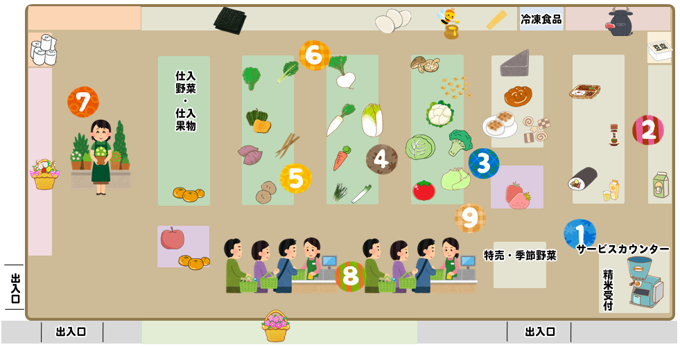 - 皆様こんにちは♪日々全力投球に心掛け頑張っております、ふぁ~みんSHOP八幡店の店長永見です!地元の新鮮な野菜、果物、お弁当類、各種パン、精肉、加工品、切花、仏花などを多数取り揃えております。