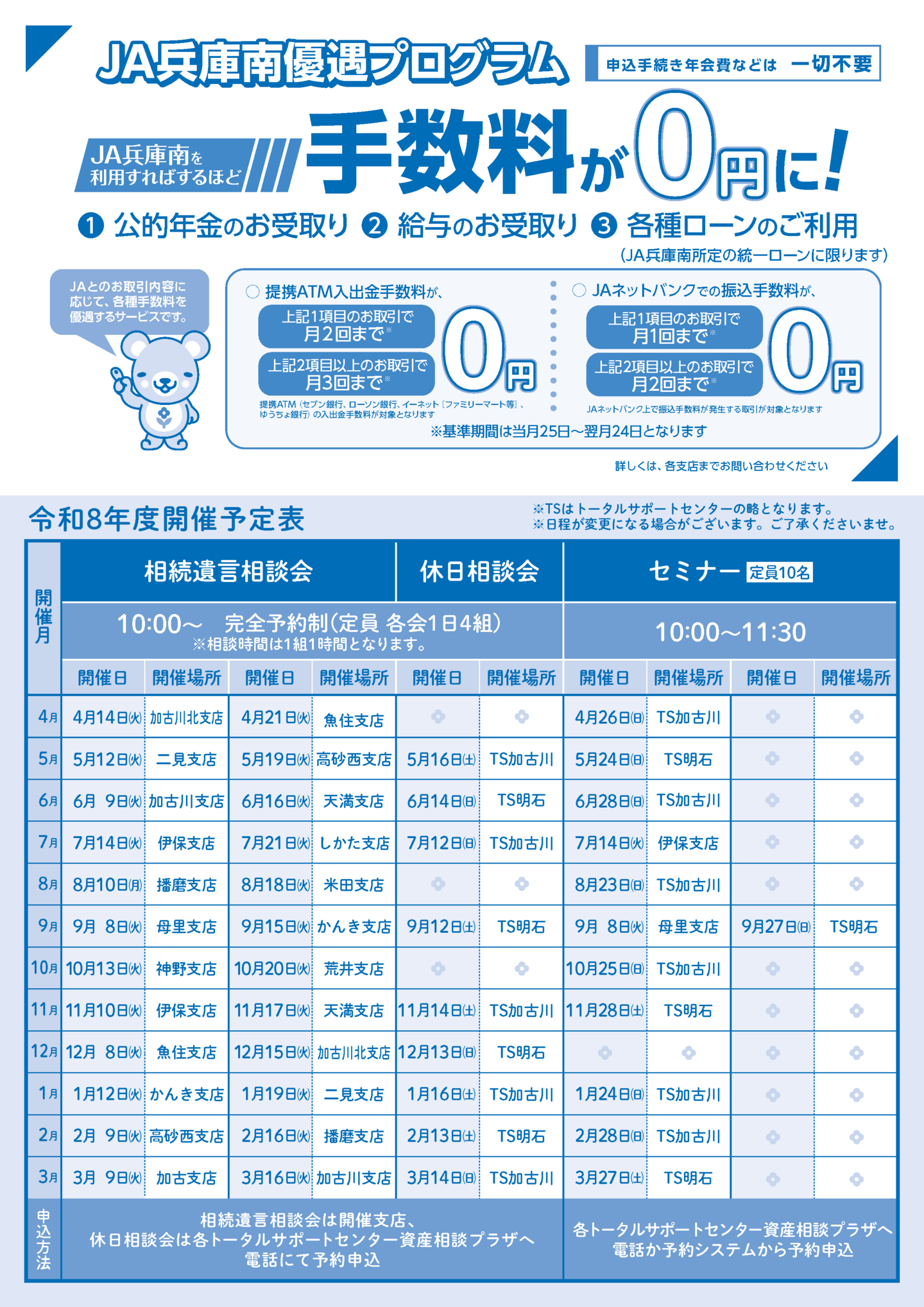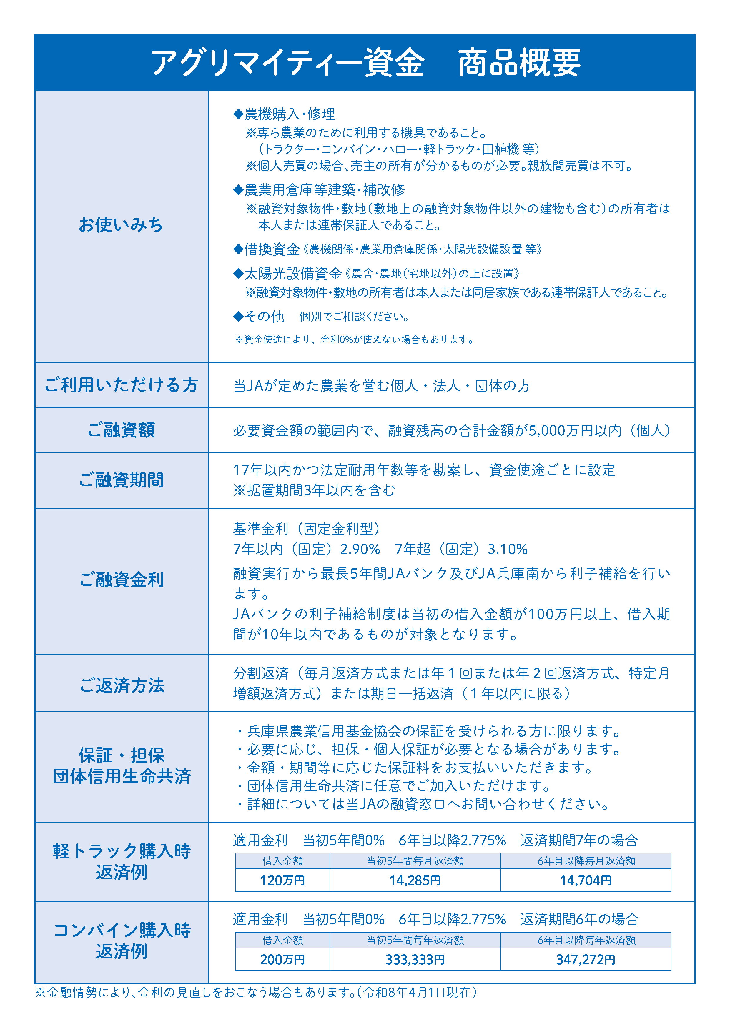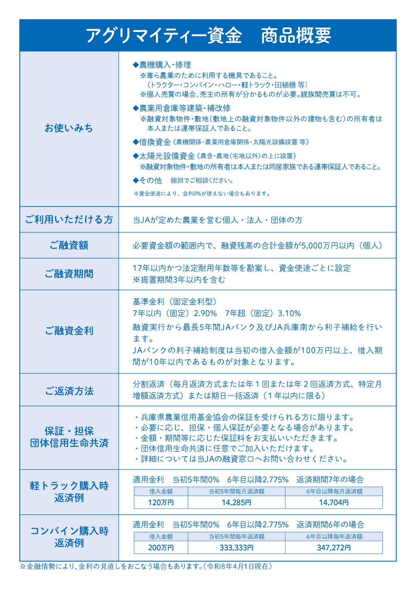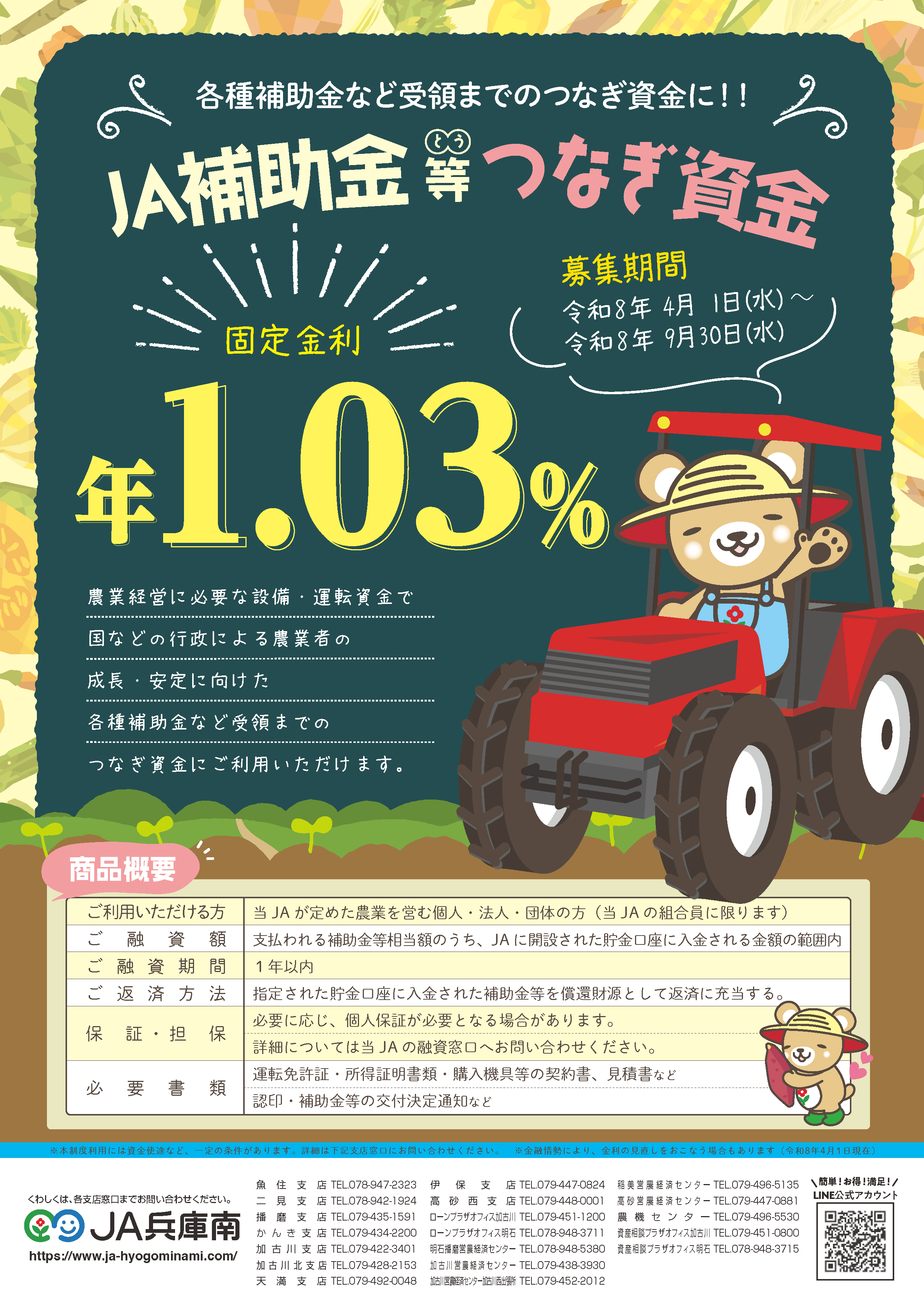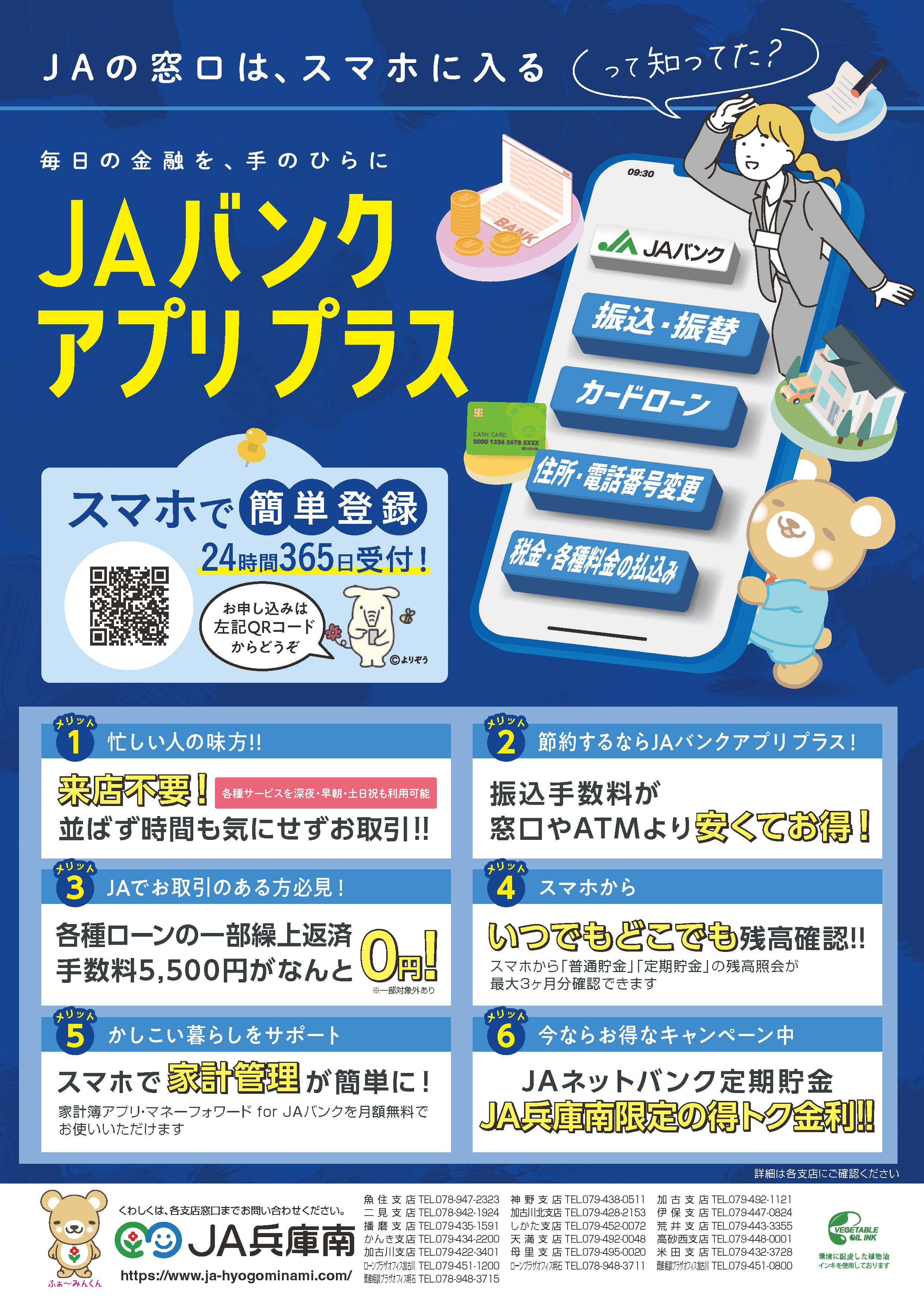 HOME > JAバンク > キャンペーン・金利優遇商品一覧 おすすめ商品 お得な定期貯金 ネットバンク・ATM定期 JAバンクアプリ JAバンクアプリプラス 退職金 相続定期貯金 はじめてのお取引き 『年金受取はJA兵庫南へ』 すでにご契約中の年金優遇定期貯金『ゆうゆう』2年以上の金利について 令和8年4月1日より満期を迎えられた方は下記の金利で自動継続となります。なお、期間等の変更につきましては、各支店窓口・渉外担当者へお問合せください。年金優遇定期貯金『ゆうゆう』 年金優遇定期貯金『ゆうゆう』 期間 金利 2年以上10年以内 0.70%(税引後0.557%) ※金融情勢により金利の見直しを行う場合もあります。(令和8 年4 月1 日現在) コツコツ貯める 子育て応援定期積金 きゅうりちゃん ゆったり 定期積金 JAの年金相談&優遇プログラム 年金無料相談会 各種ローン 住宅ローン (特約固定5年) マイカーローン (三菱UFJニコス㈱保証型) 教育ローン (三菱UFJニコス㈱保証型) JA補助金等つなぎ資金 アグリマイティー資金 (基金協会保証型) JA新規就農応援資金 (基金協会保証型)